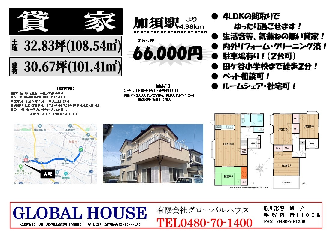 最寄駅:伊勢崎線「加須駅」約3.5km