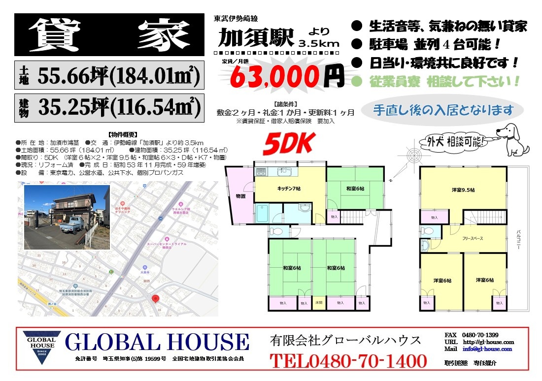 NEW!! 加須市土手2丁目 リフォームを楽しむ加須駅徒歩圏大型住宅・手数料不要!!